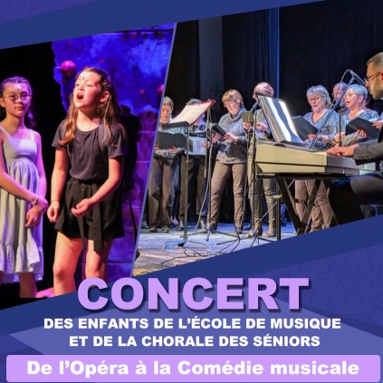 Les enfants de l’École de Musique, la chorale des Seniors de la Maison Pour Tous, ainsi que des invités, ont le plaisir de vous convier à un concert réunissant différentes générations autour d’un répertoire allant de l’opéra à la comédie musicale.