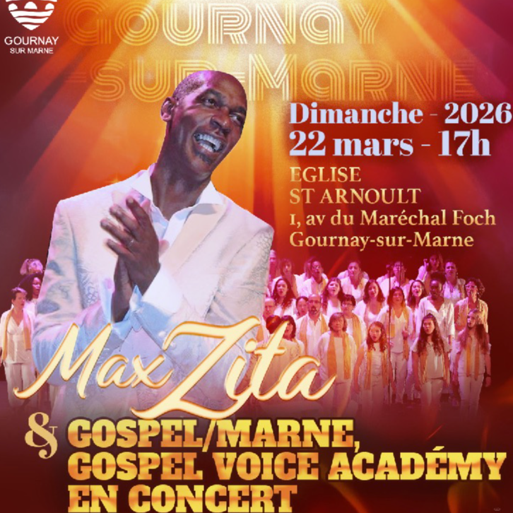 Le dimanche 22 mars 2026 à 17h, l'église Saint-Arnoult de Gournay-sur-Marne vibrera au son du gospel. Dirigés par Max Zita, les chœurs Gospel/Marne et la Gospel Voice Academy vous invitent à partager un moment musical chaleureux.