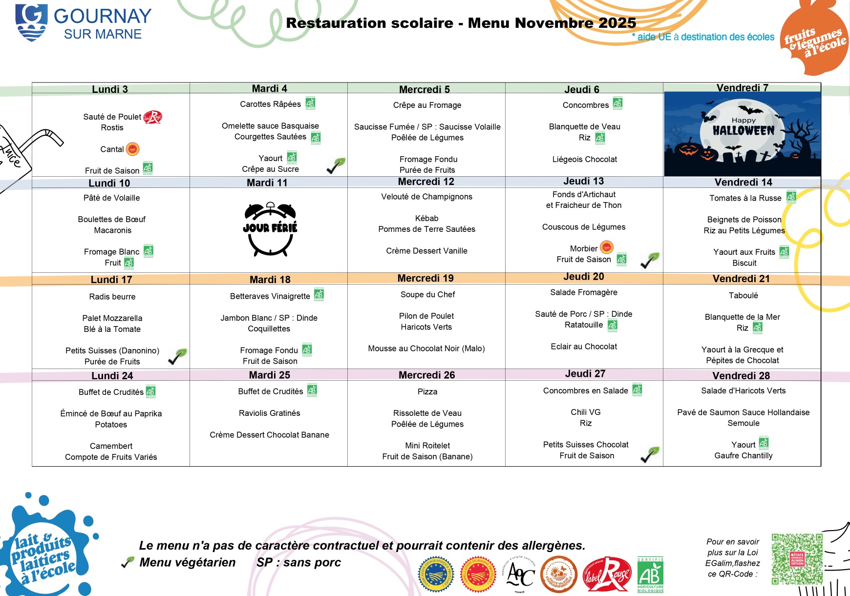 Pour les enfants souffrant d'allergies alimentaires: la famille, l'Education nationale et la commune doivent établir un Projet d'Accueil Personnalisé (P.A.I).